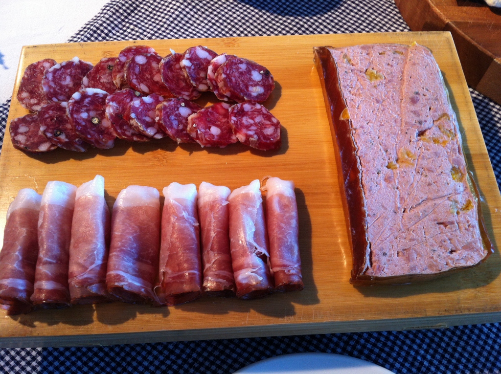 17) that’s lavender sausage, speck and duck with apricot pate; 18) cheese of course