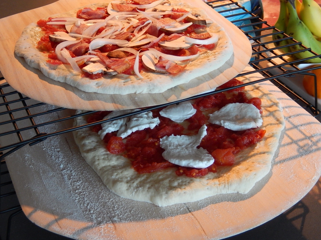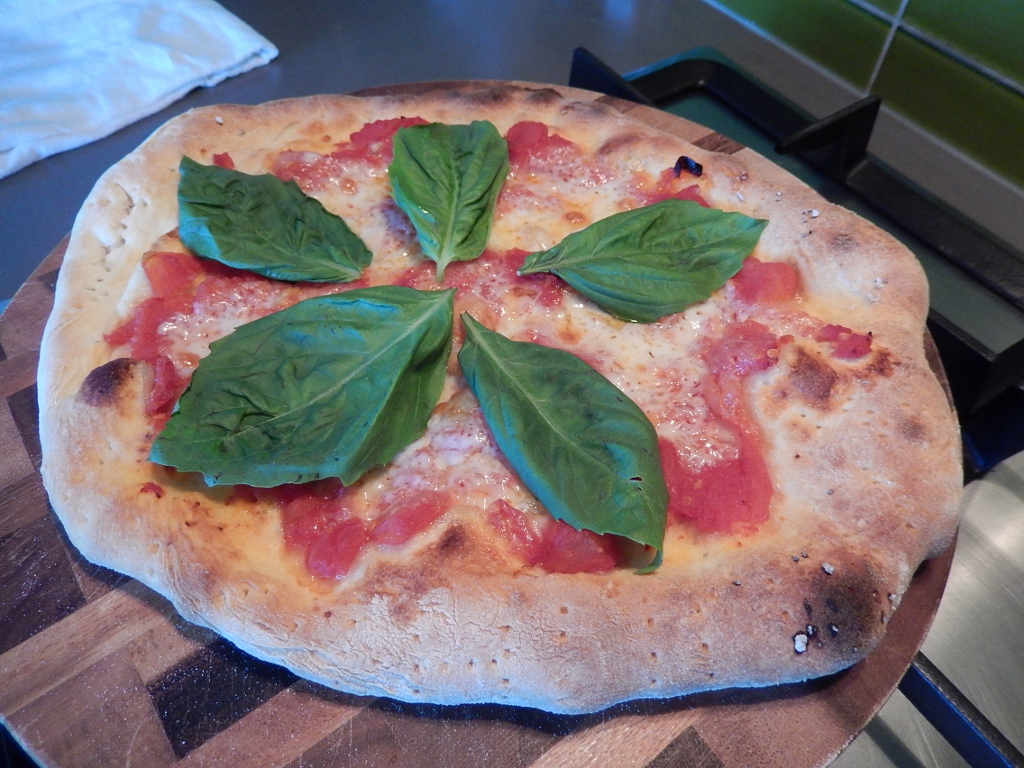 The steel is essentially a solid steel plate weighing in at 22 pounds that you stick in your oven, heat the hell out of, and then bake your pizza on. It’s very cool and produces a fine Napoli-style crispy crust. It far surpasses any pizza ‘stone’ and even beats our goto pizza-making option – Mario Batali’s cast iron pan. We made two styles – one a classic margarita; the other bacon, mushroom and onion. Yummy!
