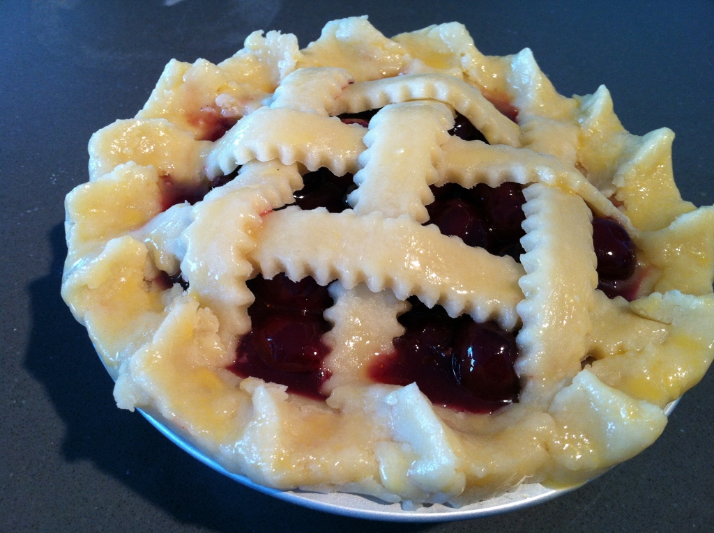 We also have been enjoying British Columbia cherry season and made a couple mini-cherry pies. We are big fans of Alton Brown’s super crust recipe and highly recommend using this suggestion of always replacing the water in your pastry dough with alcohol – in this case, I added cherry-favoured palinka I brought back with me from Budapest. I was drinking the beer, which, I have to admit, was just dreadful and will never grace our bar fridge again.