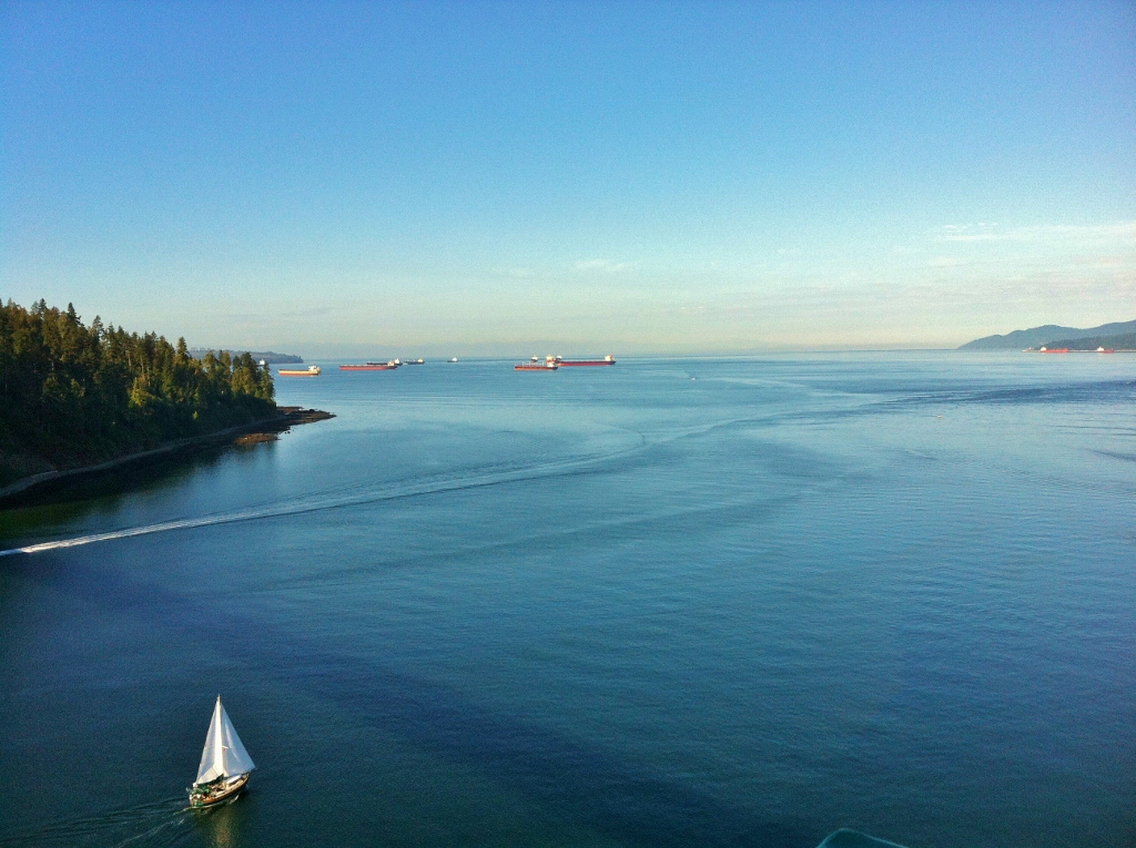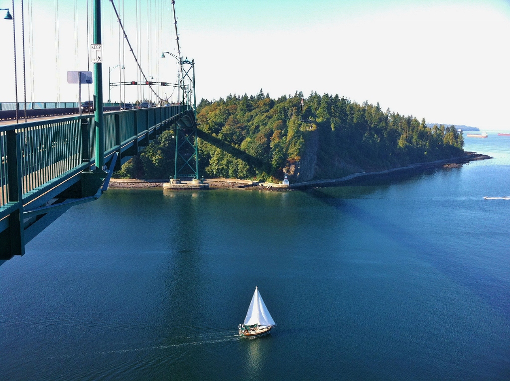 1) looking out into English Bay from the centre of Lions Gate bridge