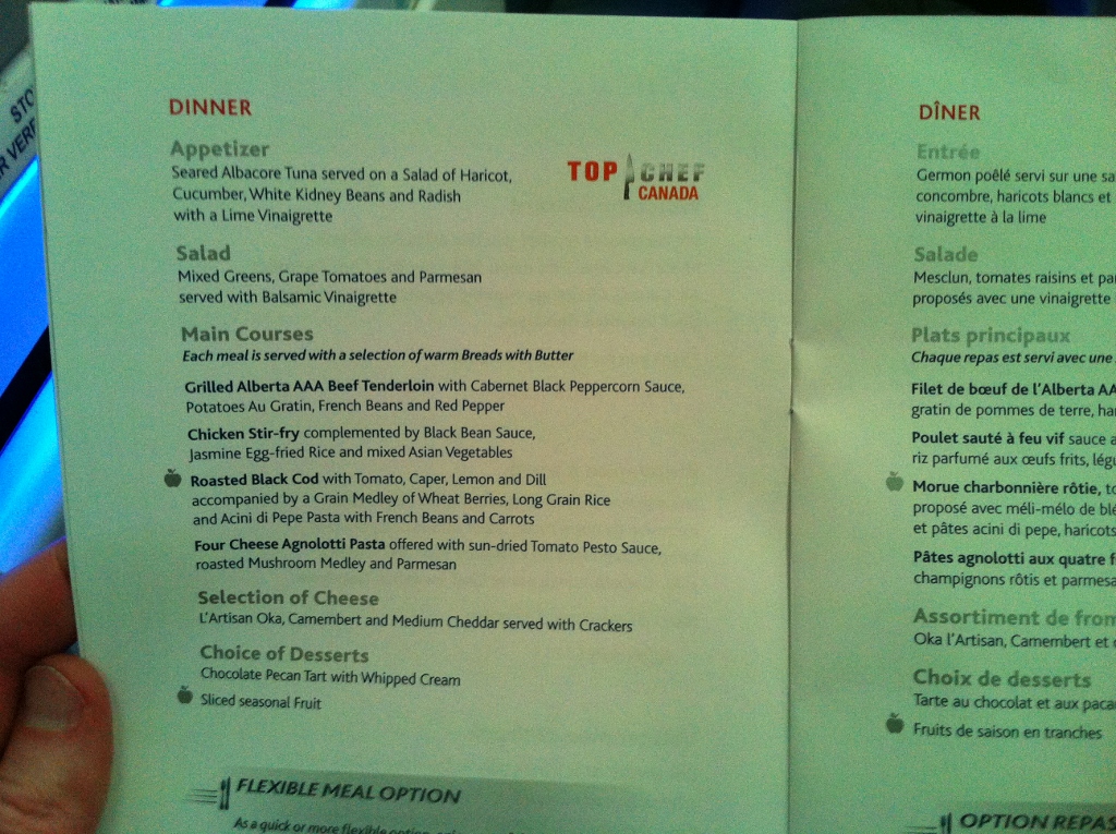 4) somewhere over Alberta, my first appetizer course arrives