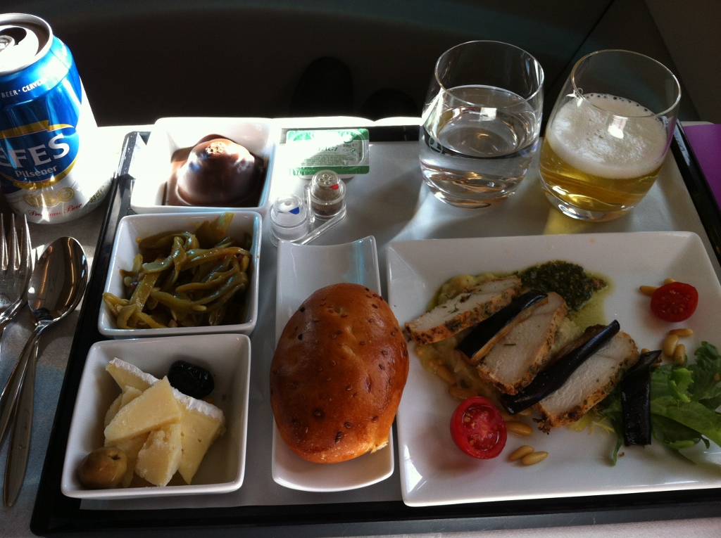 6) on route from Hamburg to Istanbul, I’m flying Turkish Airlines business class … which is very nice with pretty damn fine meals rolled out in a classic style