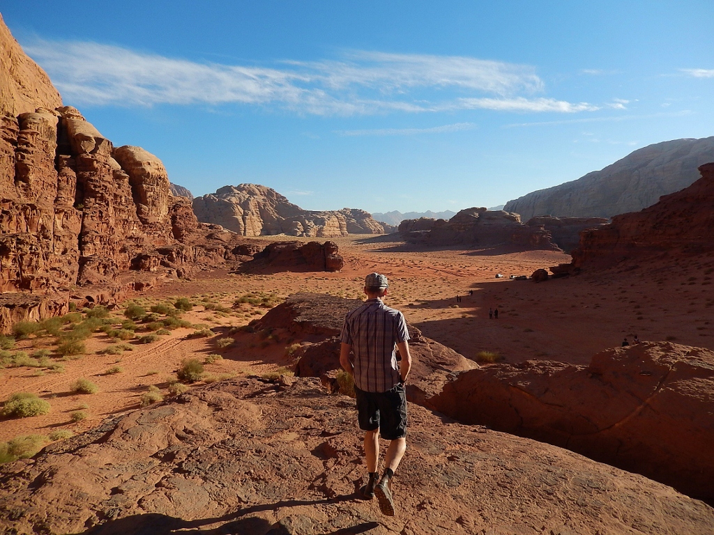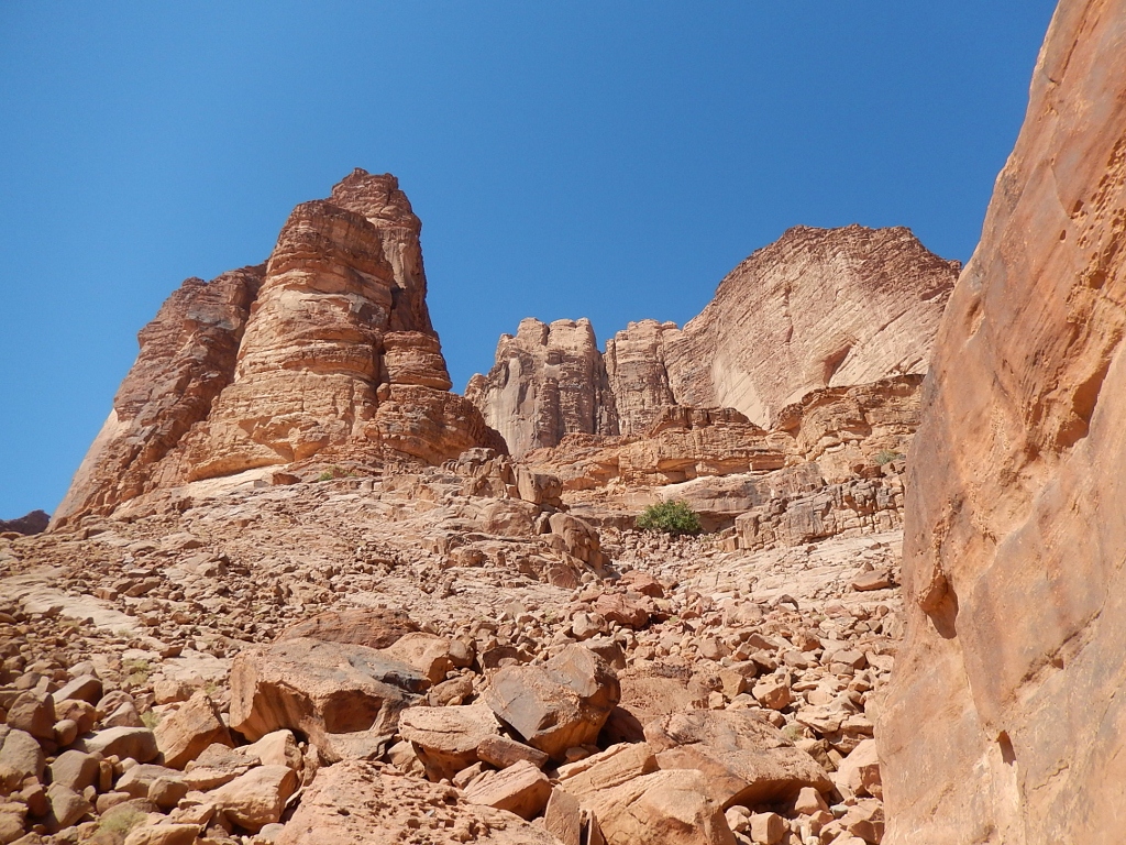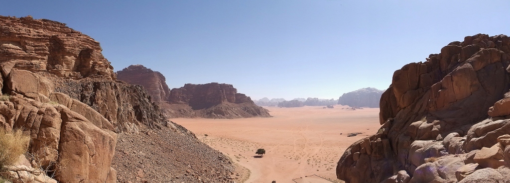 1) the view of Wadi Rum taken from Lawrence’s Spring high in the limestone/granite mountains G and I climbed (double-click on this image to open in full size)