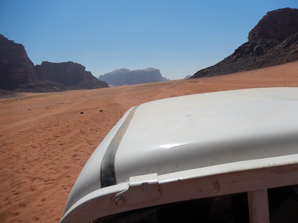 7) here we are in Wadi Rum Village in the back of Mohammed’s 4×4 about to head off the beaten track