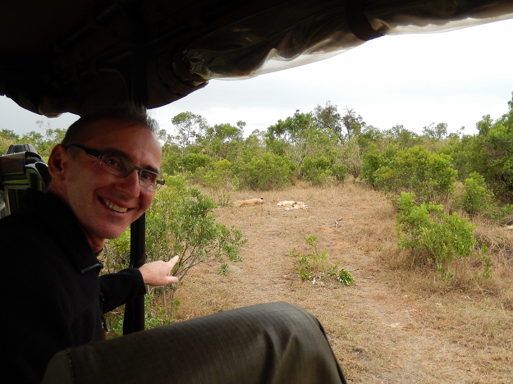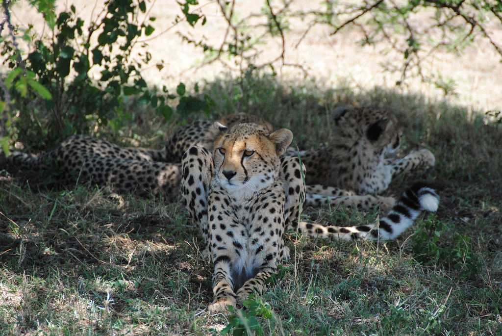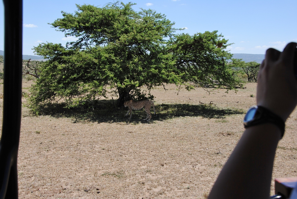 3) we came across three cheetah brothers all resting under this tree … you get a sense of how close we are with G’s arm in the foreground