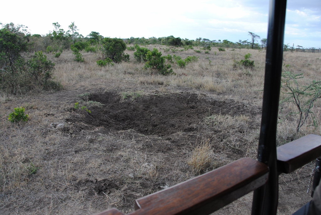 46) a mud wallow – used by elephants to roll around in to get mud on to help protect them from the bugs