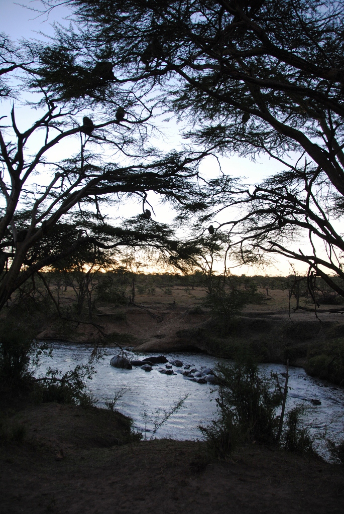 Safari aside, I visited the ‘hide’ at our camp regularly. It overlooked a small stream and watering hole. There I saw, in additional to Masai herders and young boys walking on the high ridge, zebra, baboons, impalas, topis, and warthogs. One afternoon an entire troop of baboon moved across the stream and came within several metres of the hide. I was terrified honestly as baboons have always scared the bejesus out of me. That same troop crossed in front of a small family of topi – moving in the opposite direction. I was struck by this, by the fact that animals on the Mara regularly hangout together (for protection from lions generally) and shared a small foot path used by villagers. And I wondered if it had been the animals who first laid the footpath later used by humans, or vice-versa, and, for how many thousands, indeed tens of thousands of years, they have co-existed here walking that path. And the thought of that is quite staggering and provides you … perspective. Africa is a genius at that. African perspective humbles you; humanizes you.