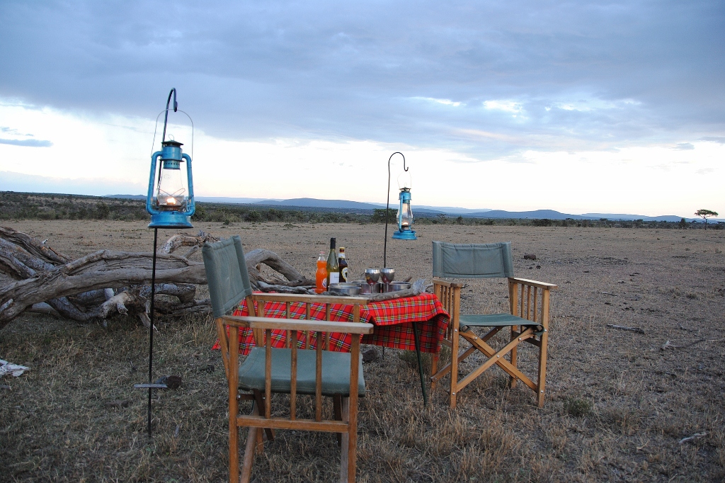 An essential part of any safari is the sundowner, a tradition that goes back into the 1800s and which is essentially a drink taken after completing the work for the day. Our sundowners were taken out on the savannah, usually with an acacia tree in the foreground behind which the sun would descend. My drink of choice was a Kenya Tusker beer; G rather settled on a gin & tonic or a glass of wine.