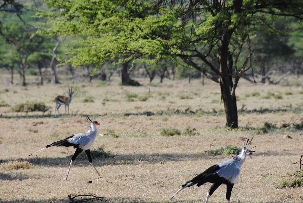 95) the famous secretary bird, called this because the plumes look like a pen stuck behind the ear and the black legs look like stockings (or so we were told). Interestingly too, these birds are very tall and stand near a metre high