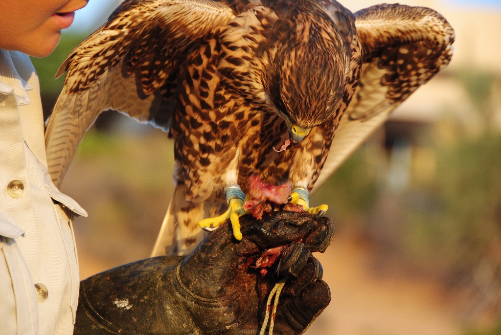 After spending a few days in Dubai, we decided to wrap up the month touring with a three day visit to the stunning Al Maha. Al Maha is about an hour drive outside of Dubai set in United Arab Emirates first National Park, the Dubai Desert Conservation Reserve. It is tricky to get to so my advice would be to use the car service provided by the resort or have your driver call to get directions. After passing security at the entrance to the reserve you’ll drive over dunes amid oryx and gazelles for about 20 minutes before arriving at the resort and its 42 private suites, which are essentially permanent Bedouin tents each with its own plunge pool and complete with Bedouin artefacts. Everything is included at Al Maha: your room; three meals a day which can be taken at its lovely restaurant or brought up to your tent suite; and a choice of 2 desert activities each day of your stay. We opted for the sundown camel trek each night (which includes champagne) and the falconry display each morning, which was really neat.