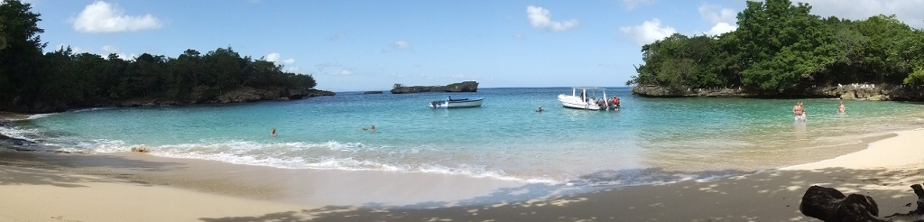 As you drive further east – and if you know the cutoff (as it is not signed) – you’ll find yourself at the to-die-for wee beach called Playa Caleton. Should you ever find yourself in the DR and on the north coast make the point to get here if you can. It’s a terrific little 500-foot beach with calm water perfect for snorkling. There is an awesome restaurant (really more a collection of huts that folks cook at) right near the beach. Washrooms are, well, spartan. You can hire a lad upon arrival who will be at your beckon call the entire day. He’ll bring you beach chairs, a table, take your food and drink orders and dart back and forth ensuring you’re well taken care of. Su and I ordered deep-fried fish while G ordered lobster. These came with a spread of salad, beans (OMG the beans were SO good!), rice, and plantain chips. El Presidente – the beer of the DR – is plentiful and cheap. The afternoon cost us DOP3,000 or about CAD$70.