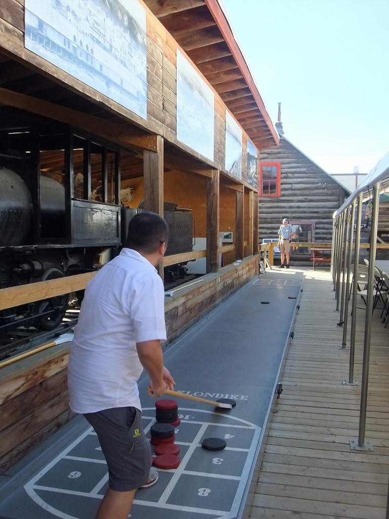 16) G plays shuffleboard (from the SS Klondike) now housed in the McBride Museum of Yukon History