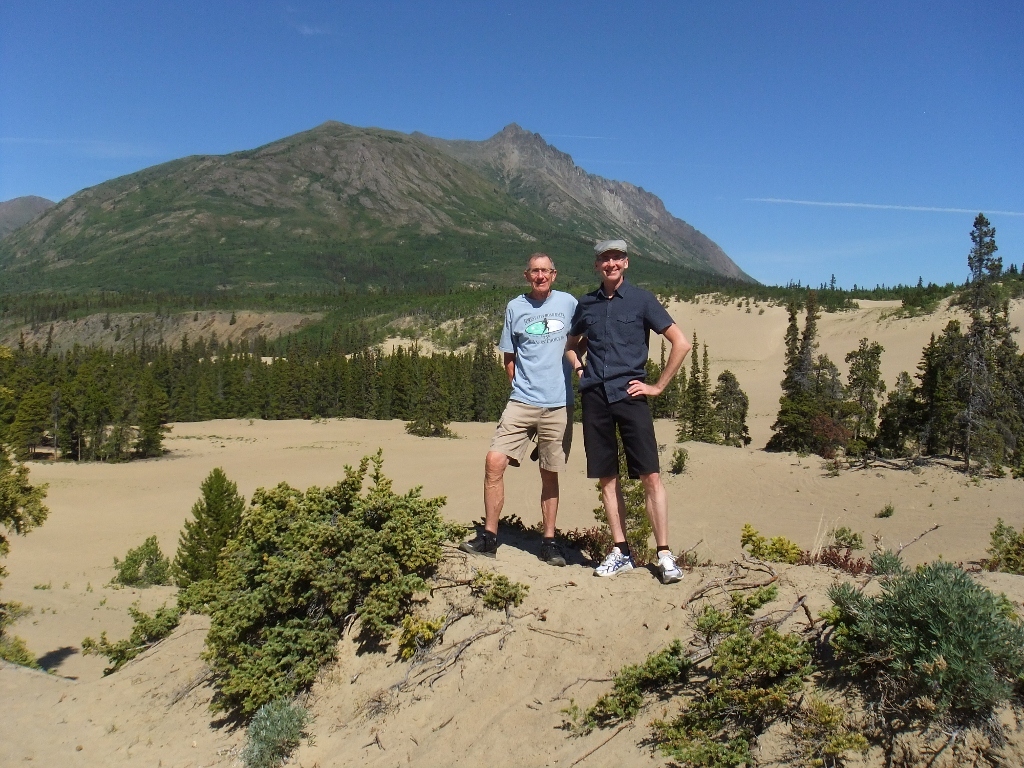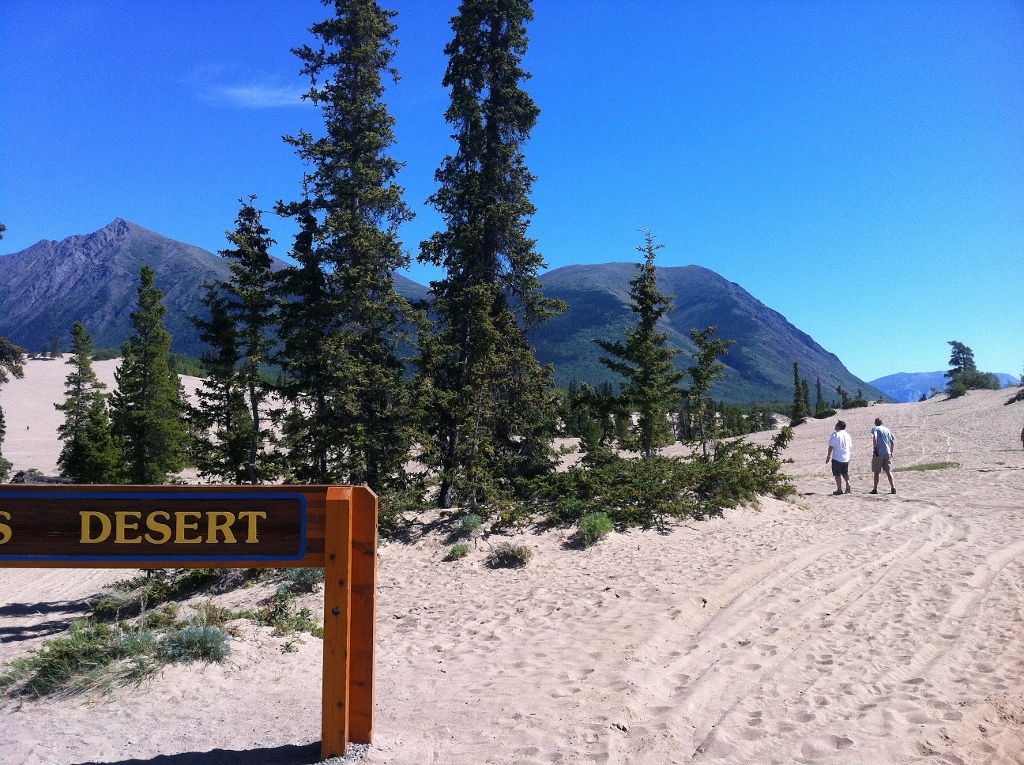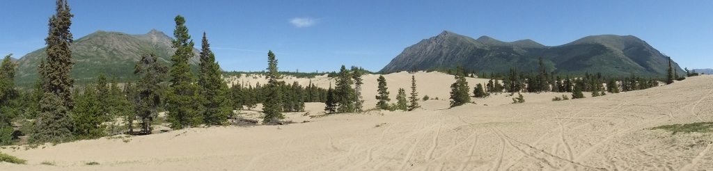 The Carcross Desert is quite the place to stumble across. Classed as the world’s smallest desert, it is in fact the remains of an ancient lake. 10,000 years ago during the last ice age, ice dams in this area created a series of glacial lakes. These lakes were as deep as 300 meters. Layers of sand and silt, trapped in the glaciers moving across the area, settled to the bottom of these lakes and when the glacial lake at Carcross – called Watson Lake – disappeared, voila, the Carcross Dunes (perhaps a more apt name than desert) emerged.