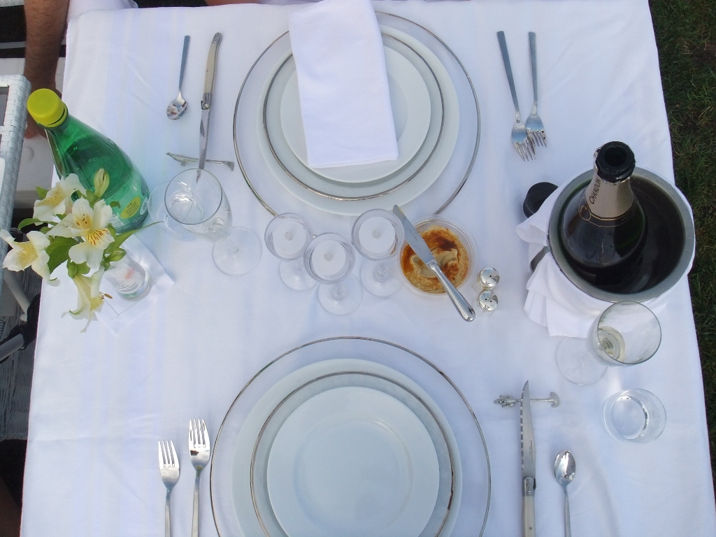 We donned our whites again and opted to take the catered meal – provided by chef David Hawksworth – rather than bringing our own food. Way lazy I know. The meal was very nice I thought – pork rillets and a sort of Moroccan chicken followed by a dessert which now some 2 months on I can’t honestly remember. We met up with tablemates from last year and sat beside an Italian family who took us under their wing and fed us silly. It was awesome! We even met a new friend, the incomparable and fashionable designer-framed Brenda, who we’ve since hung out with.
