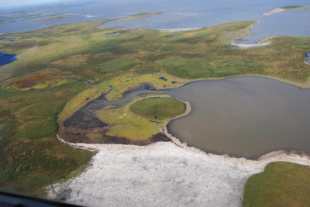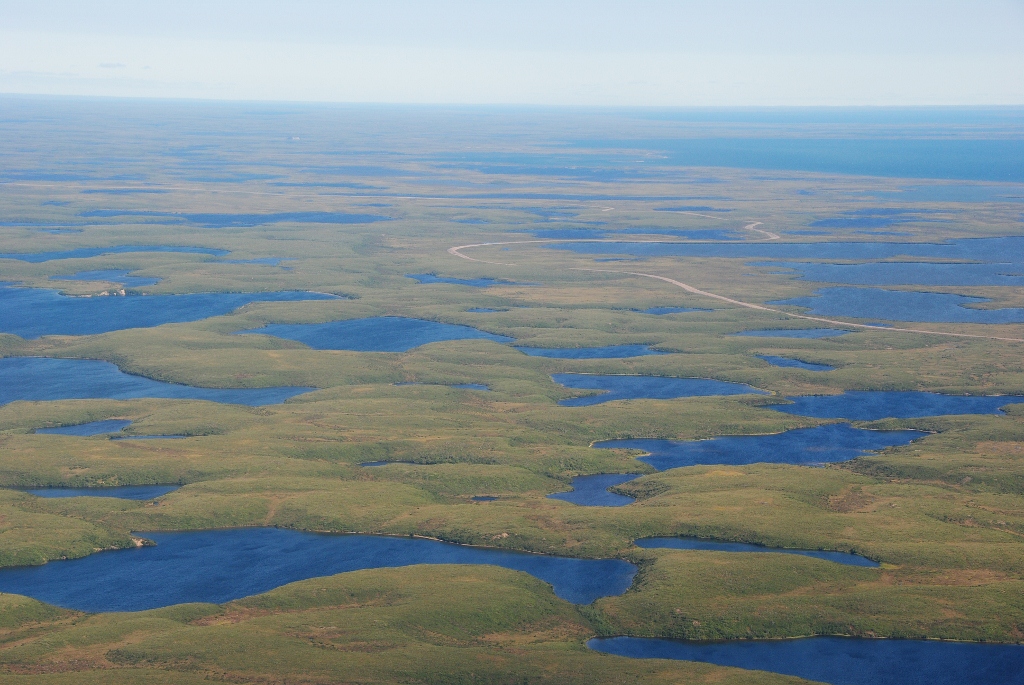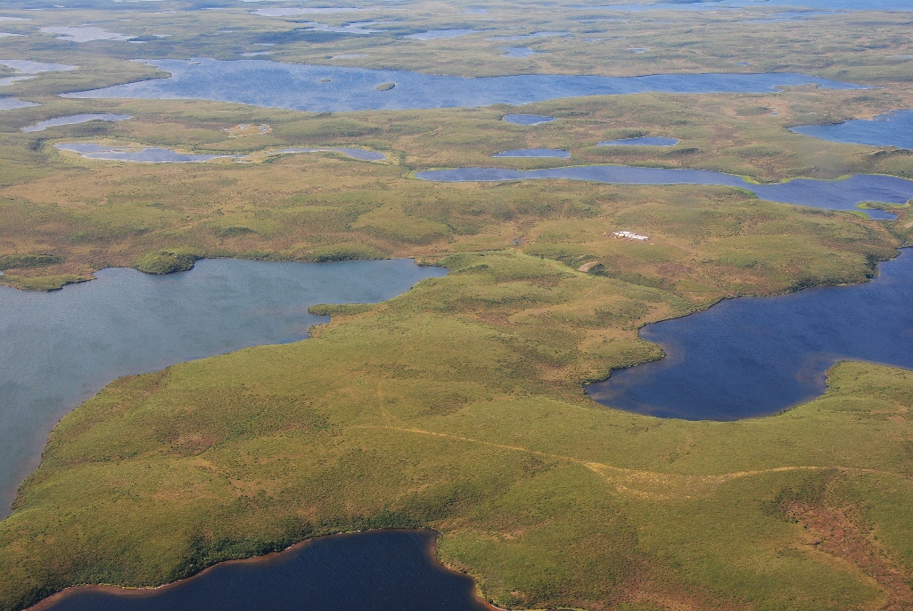 On the way up we flew over the hamlet of Reindeer Station, saw our first pingo, ice-cored hills that rise up out of the tundra like warts, and passed over a couple of NORAD’s North Warning System installations (or what we used to call back in the cold war days, the DEW line, for Distant Early Warning).