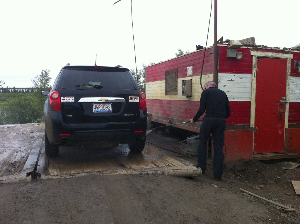 44) back in Inuvik the next morning, I take the car to the local car wash! to clean it off for the trip back south to Dawson City