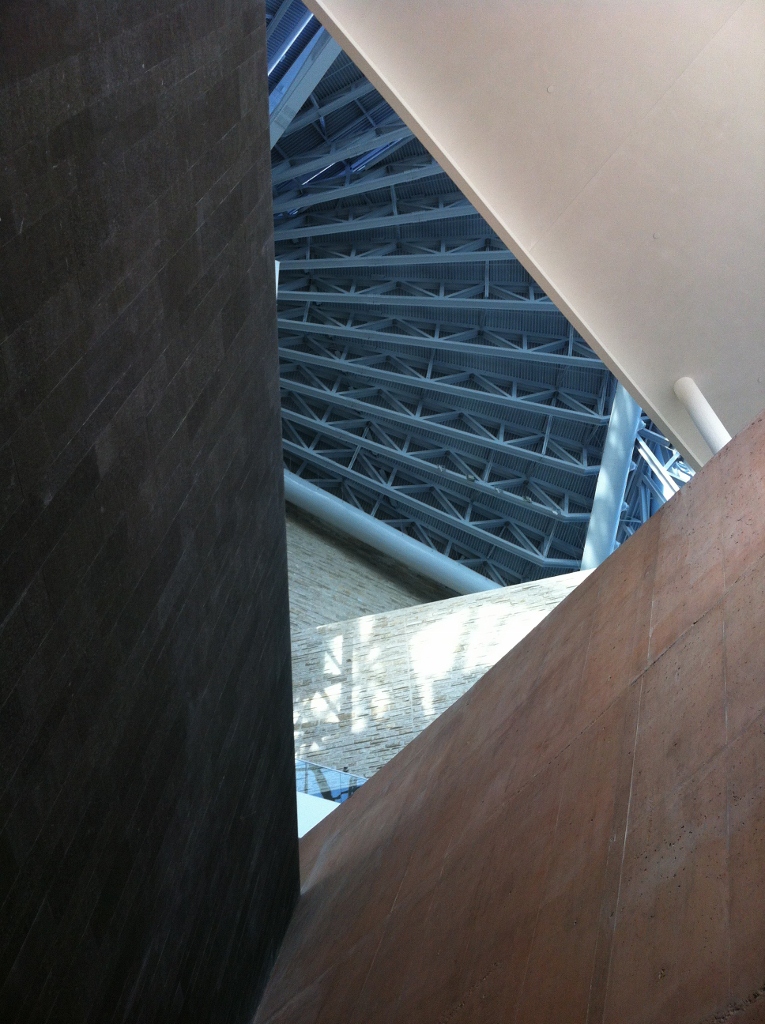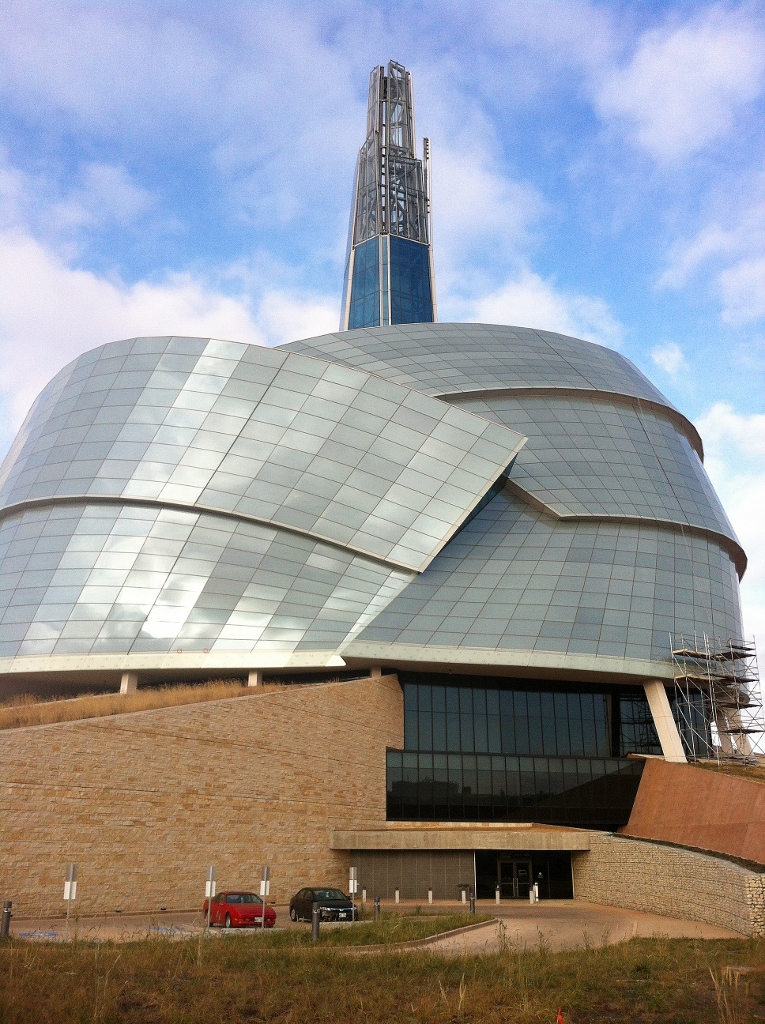 On route to a visit with family in London, I stopped off in Winnipeg and was fortunate to get in to see the new Canadian Museum for Human Rights, designed by architect Antonie Predock. The cornerstone was laid back in July 2010 by HRH Queen Elizabeth II. The museum, architecturally, is a wonder and will truly put (the always wrongly maligned) City of Winnipeg on the international map as a destination. It is built right at the Forks, the historical centre of the city, and is today an excellent example of how to develop such an area – along with the Museum there is several markets, an upscale hotel, the restored Canadian National Railway Station, outdoor concert theatre, skateboard park, and the iconic Provencher Bridge that takes over the Red River to St. Boniface.