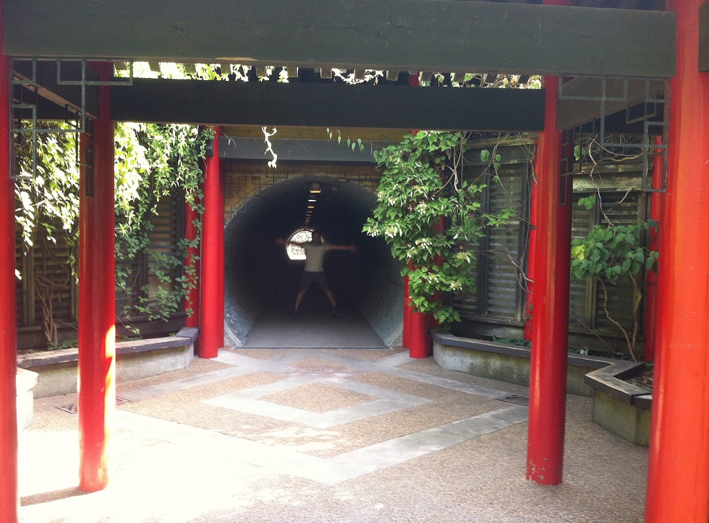 24) G jumps in the Moon Gate tunnel that leads to the North Gardens