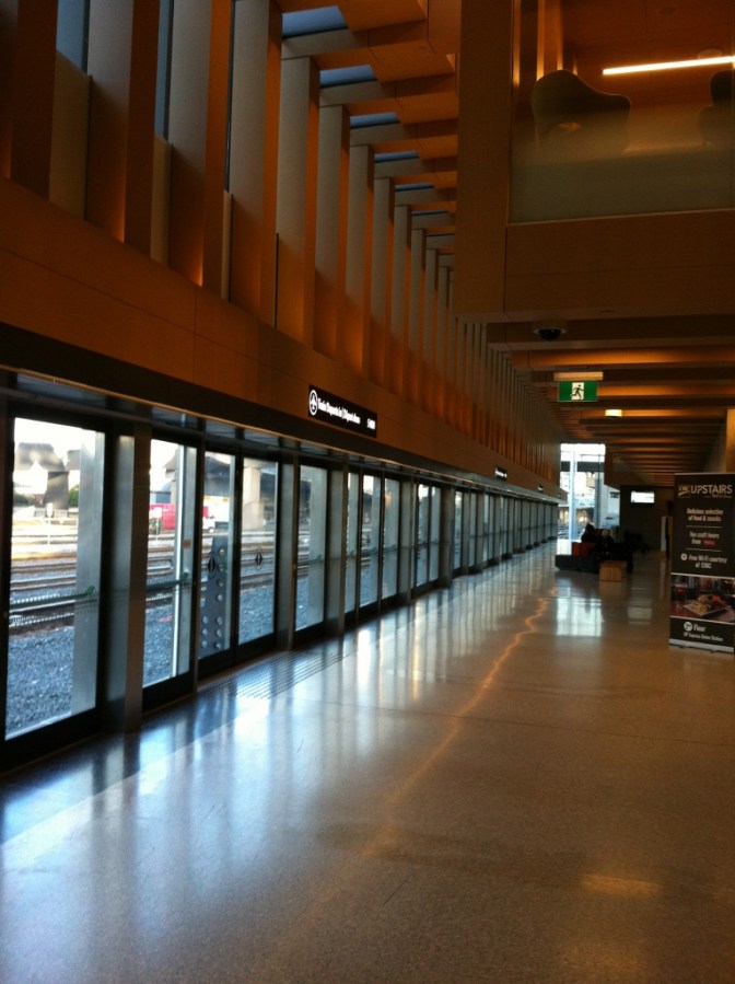 Waiting to catch the new Union Pearson Express, Toronto, October 2015